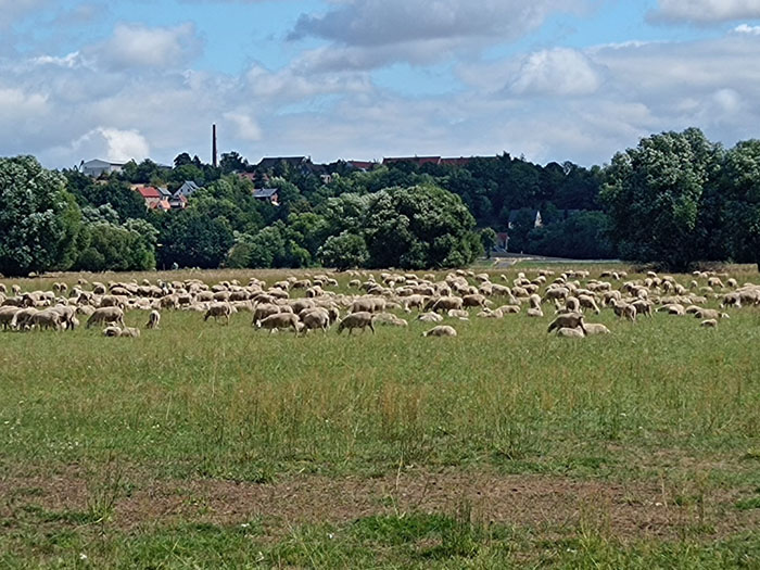Schafherde im Muldental bei Leisnig - wo ist denn der "gute Hirte"?