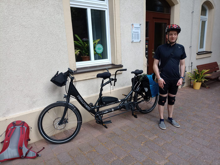 Vom 24.-29. Juli dieses Jahres haben David Volkmann und Kai Barthel mit dem E-Tandem den Landkreis Mittelsachsen umradelt. Das Ganze in 6 Etappen zwischen 41 und 70 km. Die beiden haben dabei 33 der 52 Städte bzw. Gemeinden dieses Landkreises durchfahren.