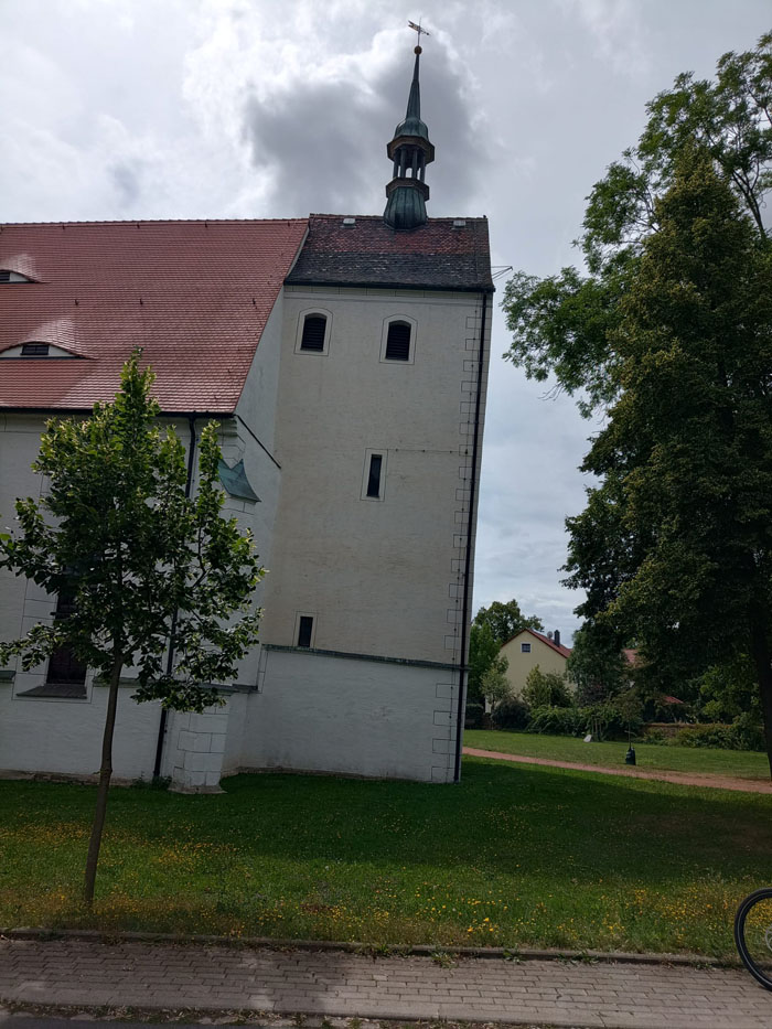 Schließlich machten wir am Samstag die Landkreisumrundung perfekt, als wir über Sornzig und Schrebitz bis nach Jahna mit seinem schiefen Kirchturm gefahren sind und von dort aus den herrlichen Jahnatalradweg erleben konnten. Ein toller Radweg! Dann ging es noch einmal bergan nach Lüttewitz und Wetterwitz, ehe wir über Gleisberg und Marbach wieder am Gebetshaus in Pappendorf ankamen. Noch einmal waren es 58 km.