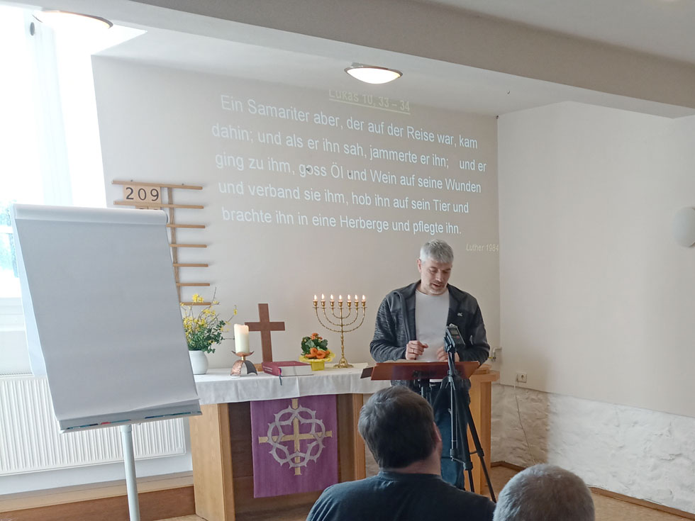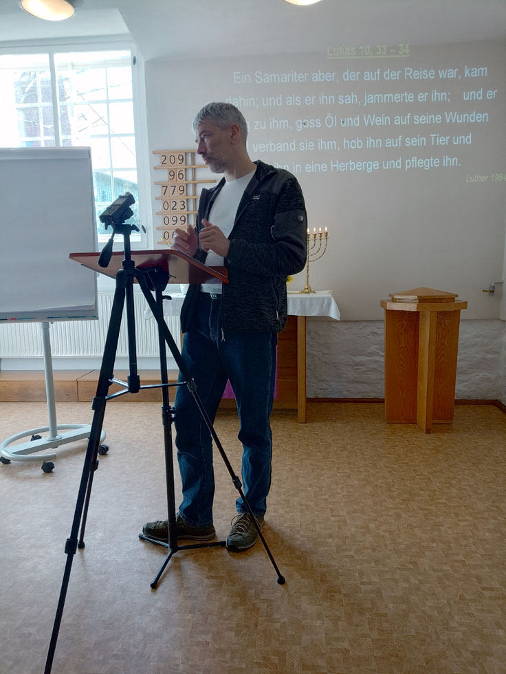 "Ich hatte eine betende Oma........" begann Klaus Baumann, Mitarbeiter in der überkonfessionellen Dienstgemeinschaft "Licht auf dem Berg" aus Annaberg seinen Dienst bei unserem Gebetshaustag am 9. März 2024 diesen Jahres. "Von Herz zu Herz", so sein Thema über diesem Tag, den wir mit ca. 20 sehr aufmerksamen Zuhörern in der Winterkirche Pappendorf, geteilt in 3 Referate, erlebten. Sehr persönlich nahm er uns mit hinein in seine jüngere Geschichte, die Gott dazu nutzte, ihn noch viel tiefer an SEIN Vaterherz zu führen, von ihm selbst immer wieder erbeten war dies, aber der Weg dahin sehr schmerzlich.