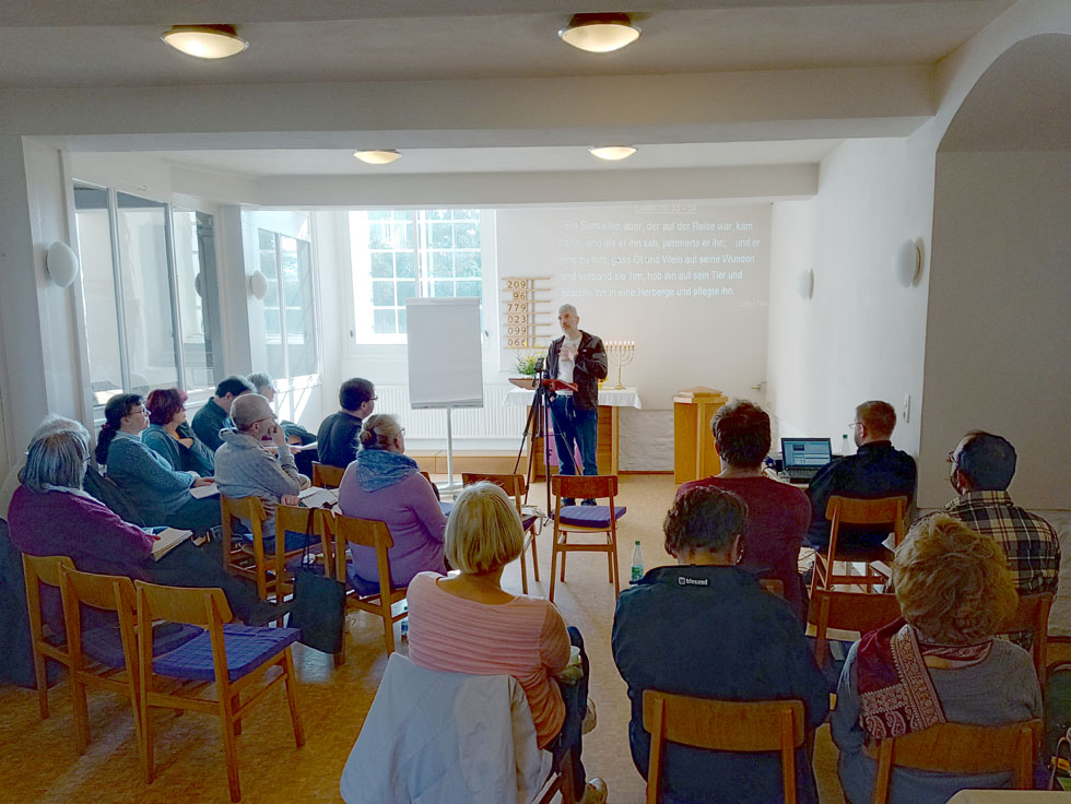Bei sommerlichen Temperaturen und an einem Wochenende, wo ohnehin viel los war, haben sich mehr als 20 Menschen rufen lassen, um gemeinsam zu beten und thematisch mal in die Tiefe zu gehen. Es war eine absolute Kostbarkeit, Pfr. Sims als Referent bei uns begrüßen zu können. Er hat uns das Thema Gnade biblisch entfaltet und gleichzeitig mit seinem reichen Erfahrungsschatz als Pfarrer und Seelsorger den praktischen Lebensbezug vor Augen gemalt. Vom Inhalt kann man sich in den Seminarmitschnitten gerne selbst ein Bild machen. Wir dürfen die Vorträge mit freundlicher Genehmigung des Referenten online stellen.