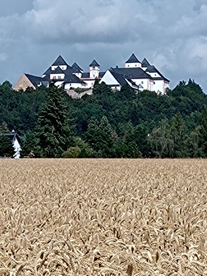 Nach dem schweren Anstieg von Schellenberg erhebt sich vor uns die Augustusburg