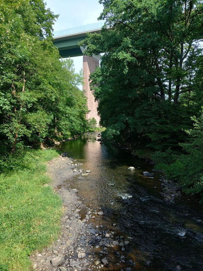 Die Freiberger Mulde mit Autobahnbrücke ebenda