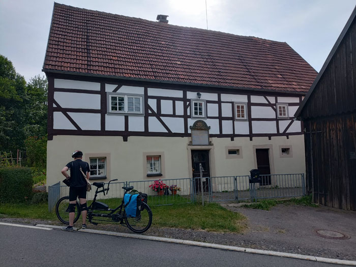 Los ging es am Montag am Gebetshaus in Pappendorf. Parallel der Autobahn nach Siebenlehn durch den Zellwald, ging die Fahrt weiter über Hirschfeld, Neukirchen, Dittmannsdorf und Oberschaar hinein ins Bobritzschtal und diesem entlang bis Kleinbobritzsch. Am Geburtshaus Gottfried Silbermanns ging es dann steil hinauf nach Frauenstein und nach einer Talfahrt noch einmal hinauf über den Kamm nach Nassau. Dort wurden wir sehr herzlich von Glaubensgeschwistern aus der „Brechstube“, einem Begegnungszentrum der Liebe GOTTES, empfangen. Schon lange wissen wir um dieses Zentrum und nun ergab sich erstmalig eine intensive persönliche Begegnung. Die erlebte Gastfreundschaft und die gemeinsame Anbetungszeit waren eine Oase für die Seele. Am Ende des Tages waren wir 67 km gefahren.