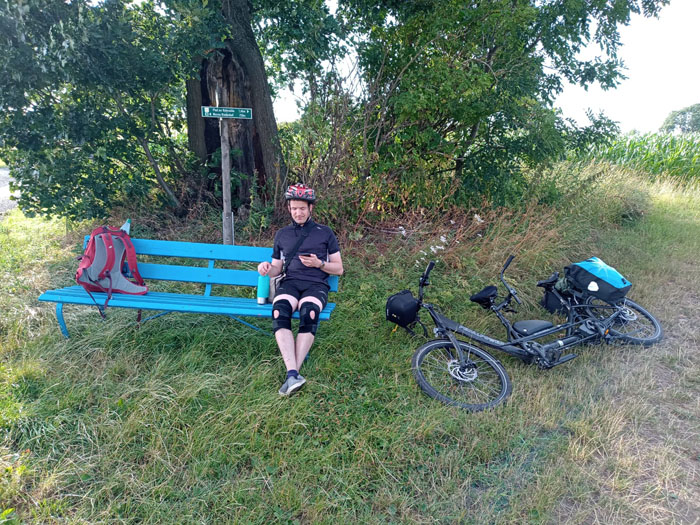 Nur 41 km standen am Freitag auf dem Tacho. Wir konnten bei sehr freundlichem Wetter die Fahrt durch die eingemeindeten Dörfer Leisnigs mit übervollen Birnenbäumen an den Straßen- und Wegesrändern genießen und von Röda aus ins Tal der anderen Mulde, also der Freiberger, hineinfahren. In Leisnig haben wir es uns in einem Wirtshaus mal etwas besser gehen lassen als sonst zur Mittagszeit. Danach ging es weiter an den Randdörfern des Landkreises entlang nach Querbitzsch, nicht ohne am Silbersee, einem verwaisten Kaolintagebau, eine Rast zu machen und die Schönheit dieses Fleckchens zu genießen. In Querbitzsch wurden wir auf einem Bauernhof mitten in der Ernte nicht minder herzlich empfangen - trotz aller Arbeit! Was für ein Segen!