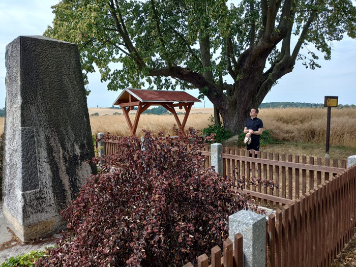 Beeindruckende Linde an einem Denkmal für einen Flugzeugabsturz nahe Niederschöna
